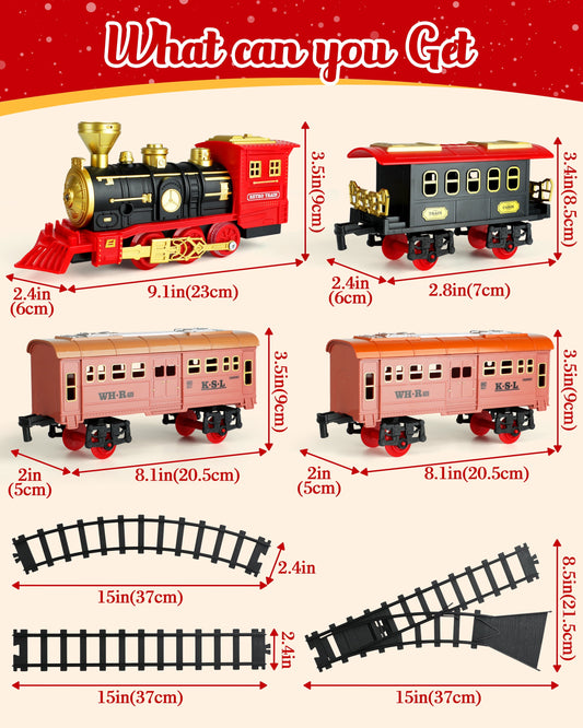 TEMI Rechargeable Electric Steam Engine Train Set for Kids 3-12 - Complete with Lights, Sounds, and Passenger Carriage!