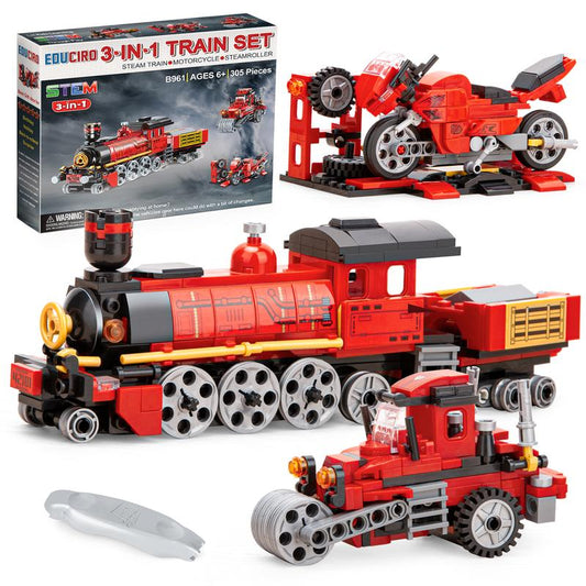 Educiro 3 in 1 Train Motorcycle Tractor Building Kit STEM Creative Toys Gifts for Kids Building Toys