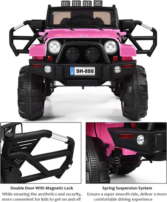 HONEY JOY 12V Electric Ride-On Truck for Children with Remote Control, Spring Suspension, LED Lighting, Functional Doors, and Safety Belt - Pink Toddler 4-Wheeler